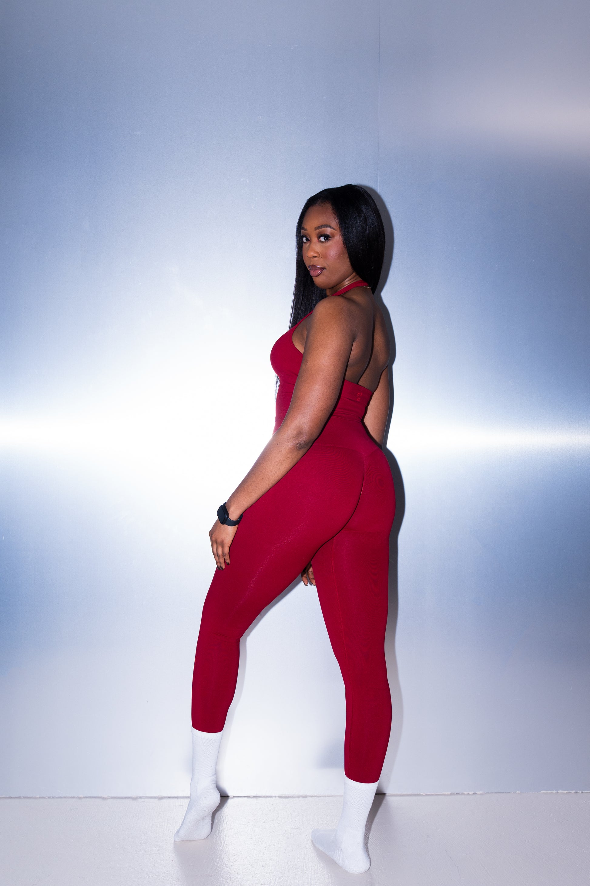 Move with confidence in the Cherry Red Leggings. Engineered from buttery soft, breathable fabric, they deliver a sculpted, form-enhancing fit that supports every step, squat, and stretch. High-waisted and seamless, they’re built for performance and athleisure style — from studio to street.